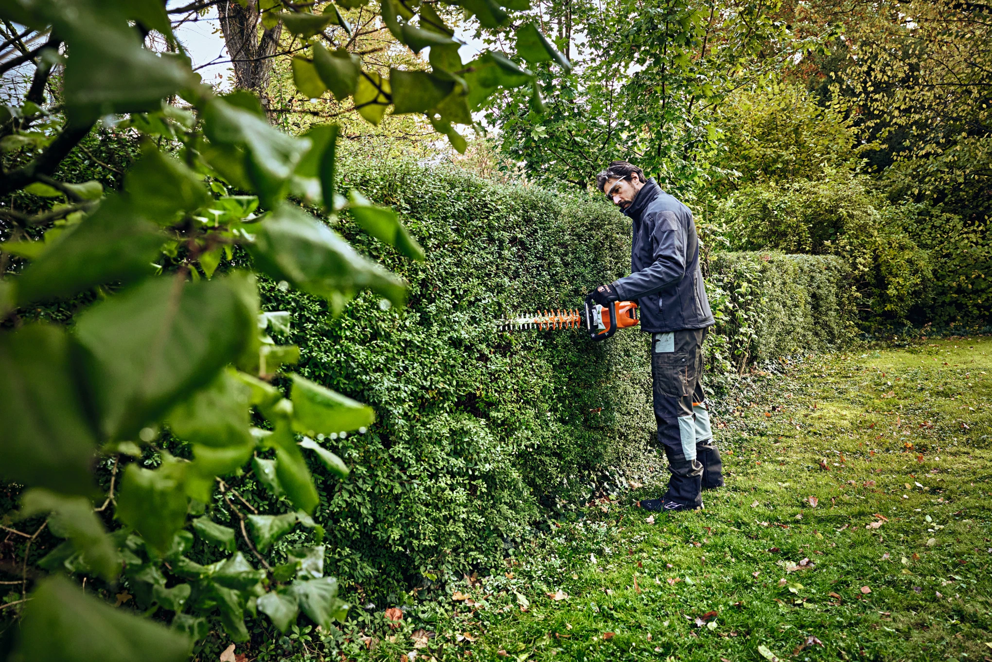 The HSA 100 is a powerful professional hedge trimmer for use in noise-sensitive areas, nurseries, landscape maintenance, and groundskeeping operations. Powered by a powerful 36 V Lithium-Ion battery and part of the STIHL AP System, it’s ideal for maintaining all types of hedges, and for trimming and pruning anything from thin branches to thick shoots that are many years old.
