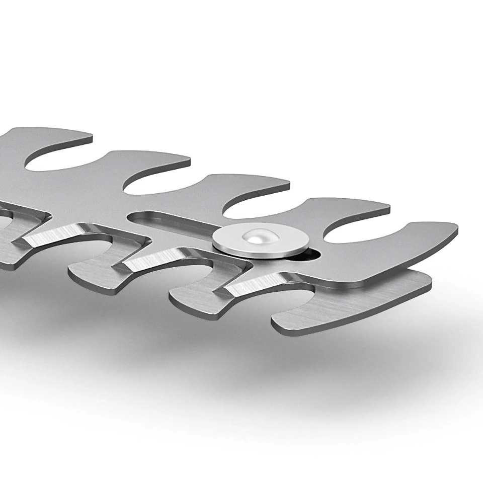 Cordless hedge trimmer with very powerful cutting performance for demanding applications, such as trimming bushes and tall hedges. Laser-cut, diamond-ground and hardened blades, blade geometry in a patented teardrop shape for perfect cuts and a healthy hedge. Effortless and ergonomic working thanks to optimal power tool balance, rotatable multi-function handle, loop handle with inner switch, and STIHL anti-vibration system. Anti-block system for easy change of the cutting blades’ rotational direction in the event of blockages. Working time with recommended AK 10 battery is up to 70 minutes.
