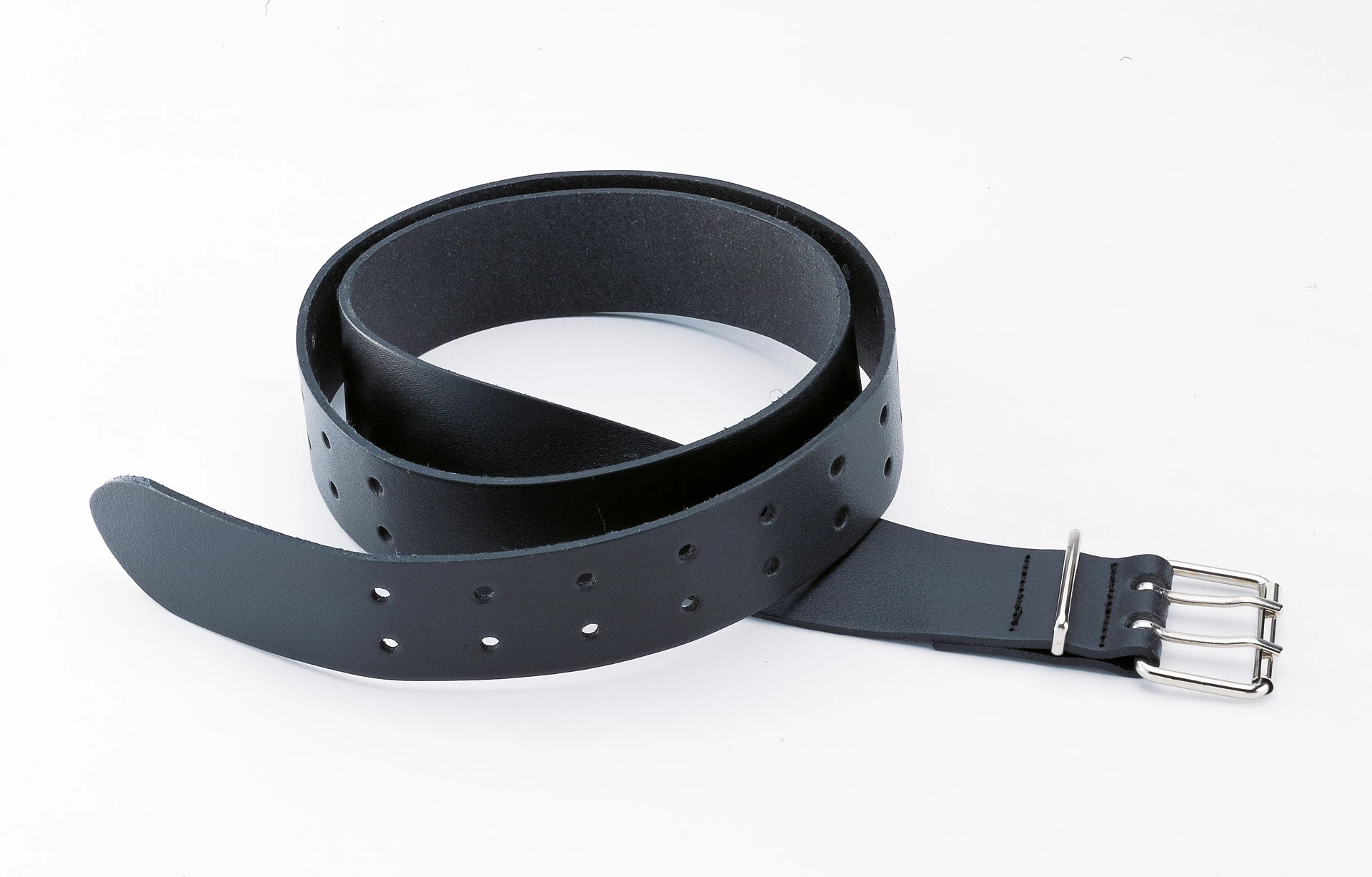 Extremely robust, approx. 3 mm thick leather with composite inner. Double prong buckle. Length 125 cm. Width 4 cm.