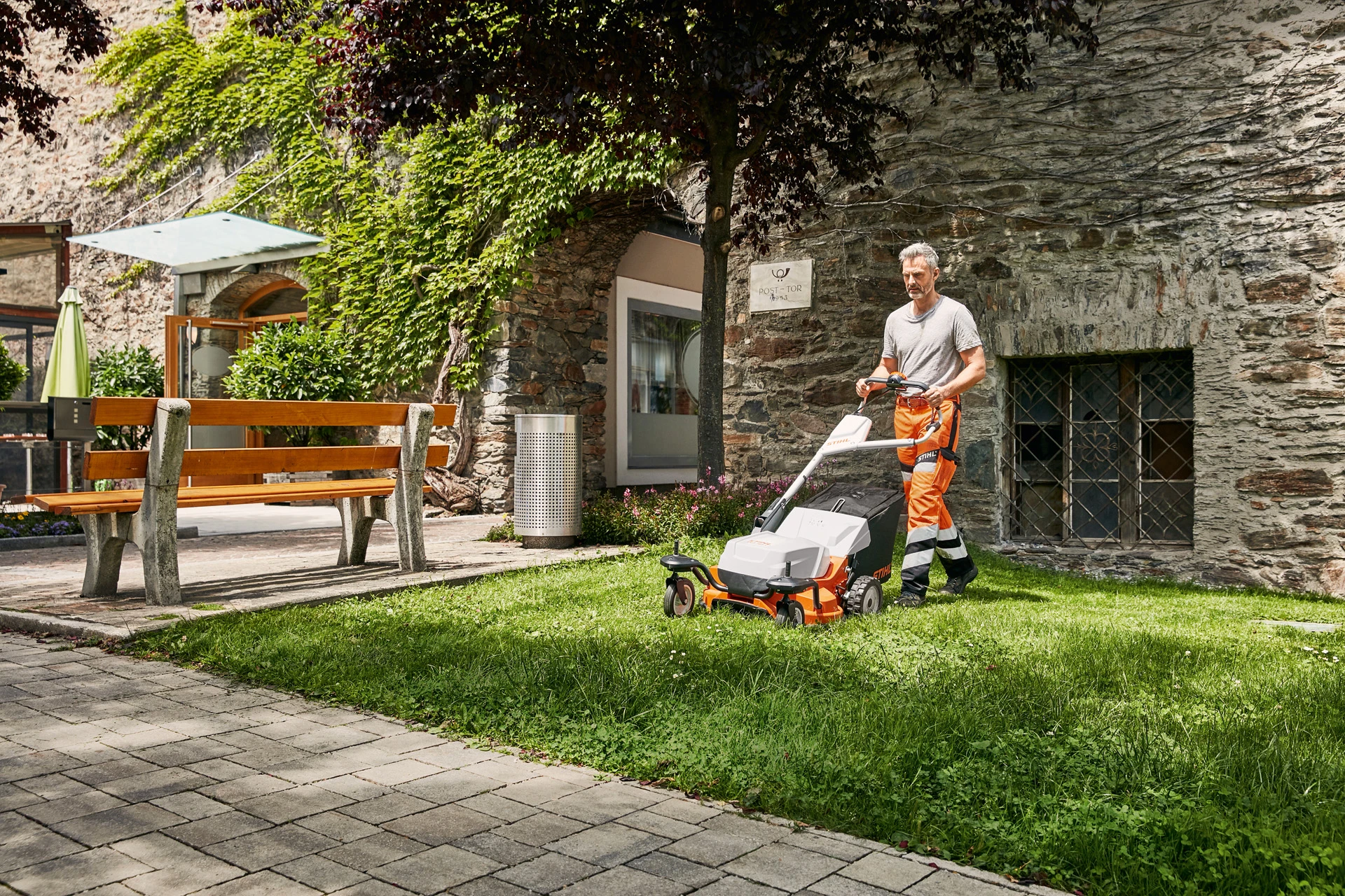 The RMA 765 V is the ultimate cordless lawn mower for professional grounds maintenance and lawn care. Part of the STIHL AP System, operating the machine is quiet and sustainable, meaning you don’t have to worry about refuelling the machine mid-operation. The lithium-ion batteries provide the brushless electric motor with the right amount of energy required to power the powerful 2-blade mower and the synchronised blades. With a cutting width of 63 cm, the RMA 765 V delivers precise, fine cutting – no matter the terrain you are tackling.